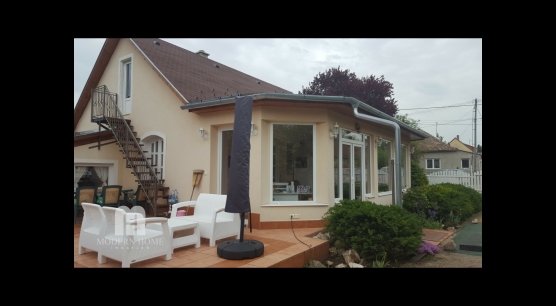 Agárdon takaros családi ház apartmannal együtt eladó! Agárd frekventált, mégis csendes részén, 1080 nm-es telken 90 nm-es, D-K tájolású, jó állapotú, 1 szoba + amerikai konyhás, nappali, teraszos, beépített verandás, téglaépítésű családi ház eladó! A telken egy 42 nm-es klímás apartman is található, ami jelenleg működő vállalkozásként üzemel, ami igény szerint meg is szűntethető. A ház gáz – cirkó, az apartman gáz – konvektoros fűtést kapott. Burkolatok tekintetében a szoba laminált parkettás, a fürdő, WC, konyha járólapos. Gépkocsibeálló kialakítása lehetséges, illetve vendégek részére a pakolás utcán és udvarban. Az udvarban faház és nyári konyha is megtalálható. 10 perc sétával minden fontos intézmény elérhető.