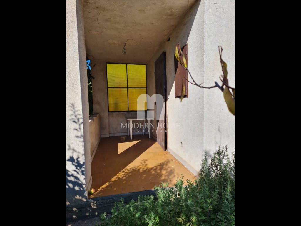 3)elosztása: fedett terasz + előtér + 1 szoba + konyha + fürdő + wc + alápincézett rész. ( 33 nm )