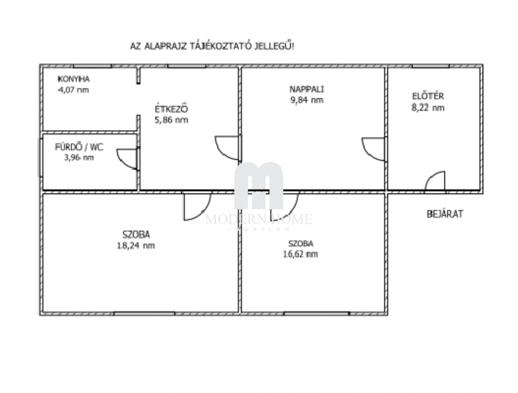 Elosztása: előtér + nappali + 2 szoba + konyha + étkező + fürdő + wc.