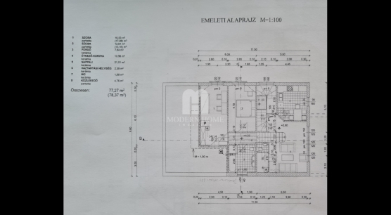 - felsőszint: 3 szoba + fürdő – wc + mosókonyha.