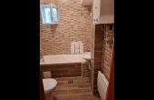 Szobákban lamináltpadló, míg a többi helyiség hideg burkolattal fedett. Fürdőszoba és konyha új arculattal ékesíti a házikót.