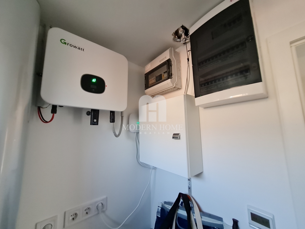 9)az otthon melegét infra padlófűtés, 3,5 KW hűtő – fűtő klíma biztosítja.
