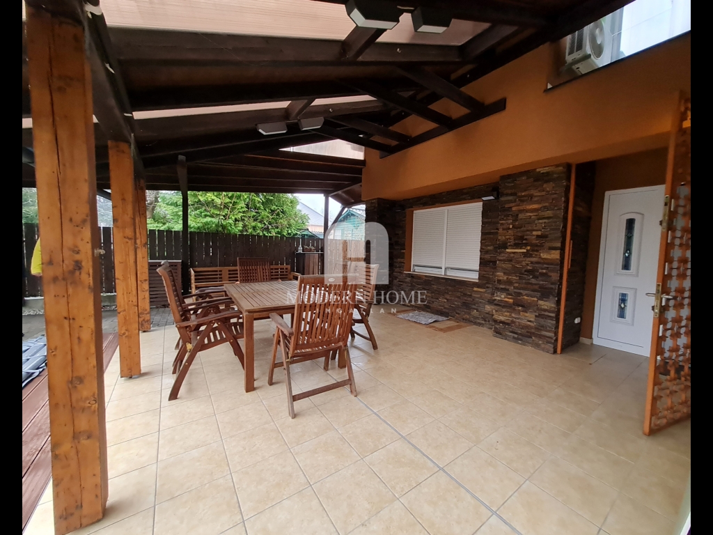 15) zárt körbekerített / parkosított udvarban örökzöldek, hintaágy, kerti kiülő, hangulatos fedett terasz. ( 32 nm )