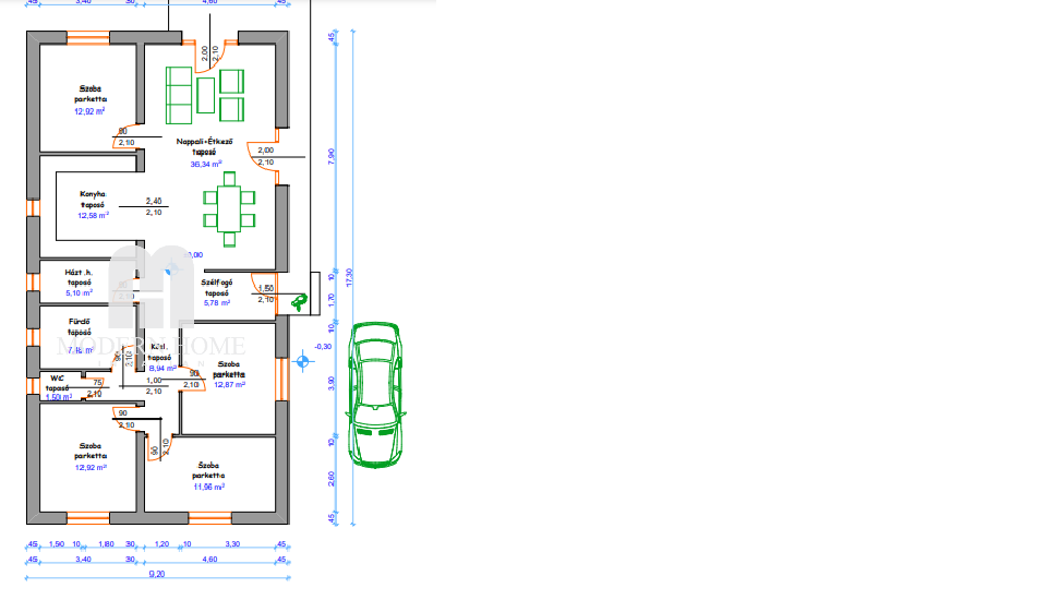 A jelenlegi árban beletartozik: alap + szerelőbeton + főfalak + alapcsövezés ( víz, villany, csatorna kiállások ) statikai végzés, terv-dokumentáció , gépészet, E-napló nyitás, műszaki ellenőr biztosítása.