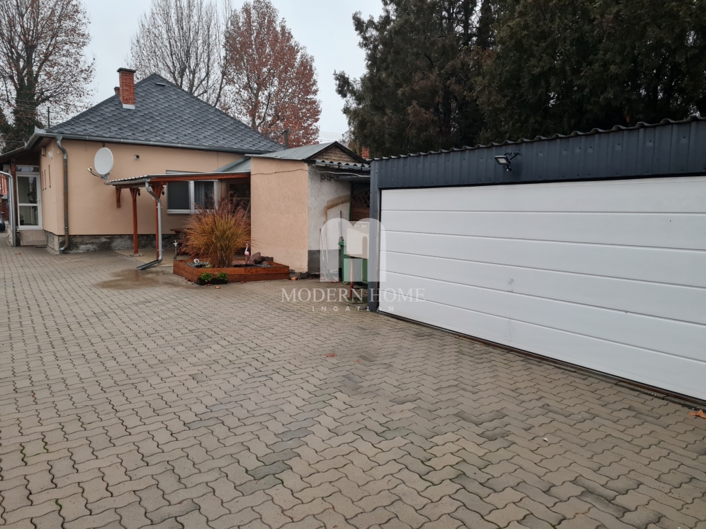 Zárt / térkövezett / körbekerített udvarban 2 állásos elektromos kapuval felszerelt garázs, 25 nm tároló, és kerti csap kapott helyet. Több autó részére gépkocsibeálló létesíthető.
