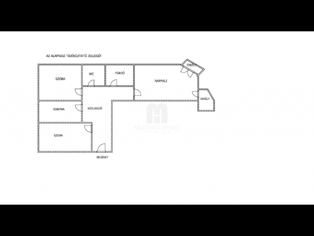 3) elosztása: előtér + nappali + 2 szoba – konyha - fürdő – wc – duplaerkély.