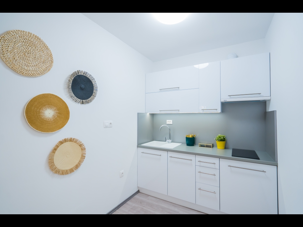 3) elosztása: előtér + 1 hálószoba + amerikai konyha nappali + étkező + fürdő + wc.