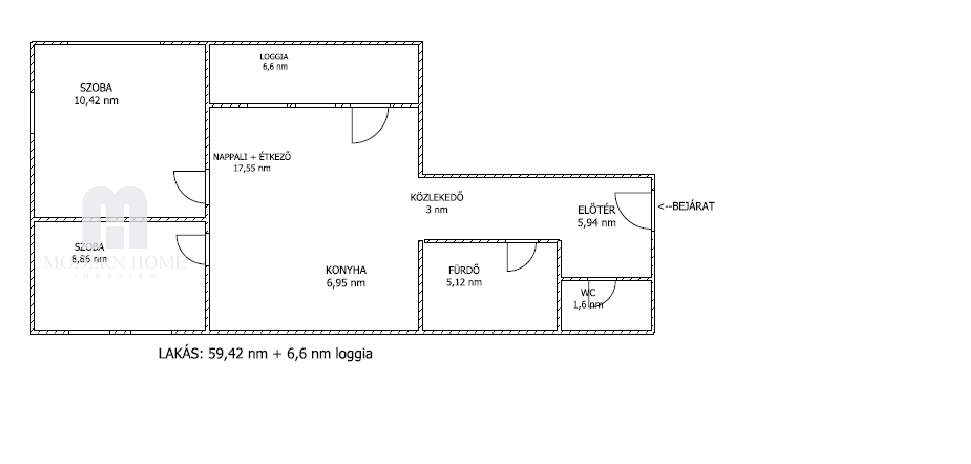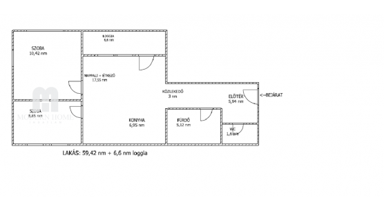 A lakás második emeleti + erkélyes, 59,42 nm + 6,6 nm erkély! Amerikai konyha + nappali + étkező + 2 szobás.