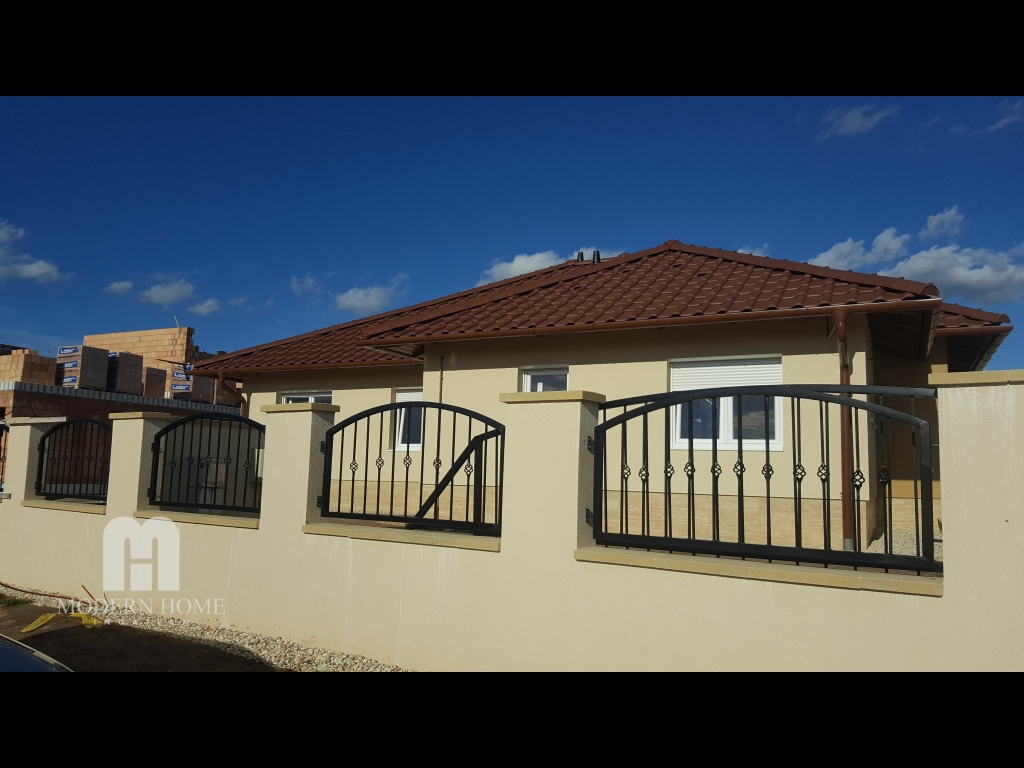 Siófok- Sóstón, újonnan kialakított lakóparki övezetben, most épülő, 609nm es osztatlan közös telken, egyenként, 304,5 nm es telekrészen, egyszintes, nettó 61,42nm es, 13,3 nm es terasszal, amerikai konyhás, nappalis+ 2 félszobás,(a klíma és a riasztó előkészítve) téglaépítésű ikerház eladó! A szobák laminált parkettásak, a többi helyiségbe hideg burkolat került. A falazat 7 cm es szigetelést kapott, műanyag ablakok kerültek beépítésre,(bukó, nyíló) melyek redőnnyel felszereltek. A fűtése gáz cirkó, mindenhol padlófűtés és az infrapanel kialakítására is van lehetőség. Minden közmű bevezetve, önálló mérőórákkal felszerelve. A kertben automata locsolórendszer, elektromos kovácsoltvas kerítés, kétállásos autóbeálló tartozik az ingatlanhoz. Igény szerint, a szaniterek, burkolatok kiválaszthatóak. IÁ: 31MFT