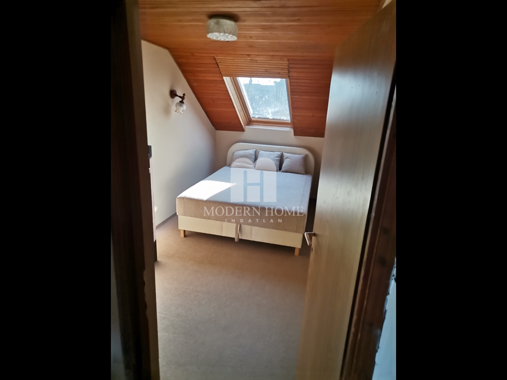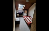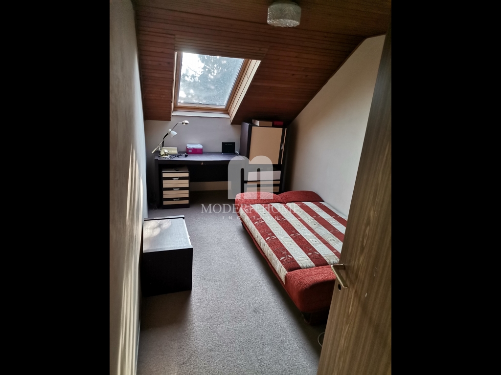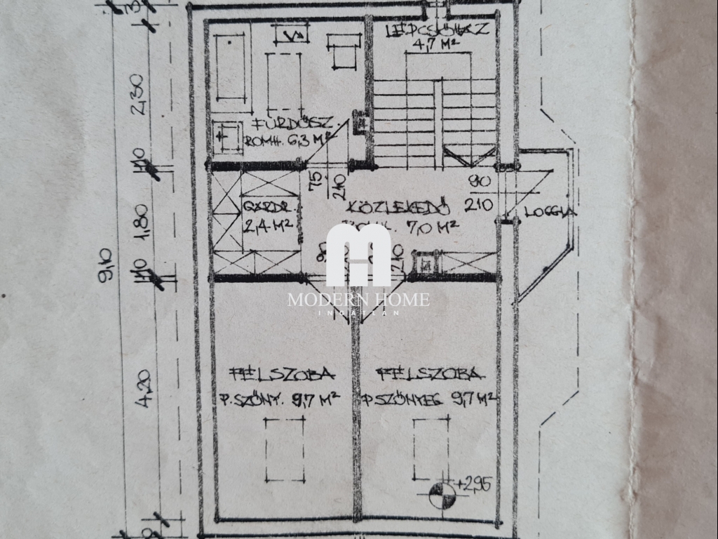 Emelet: közlekedő + gardrób + 2 szoba + fürdő / wc + loggia.