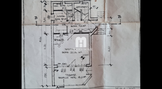 Földszint: nappali + konyha ( igény esetén egybenyitható ), kamra, wc, közlekedő, és lépcsőház. A nappaliból nyíló 15 nm terasz.