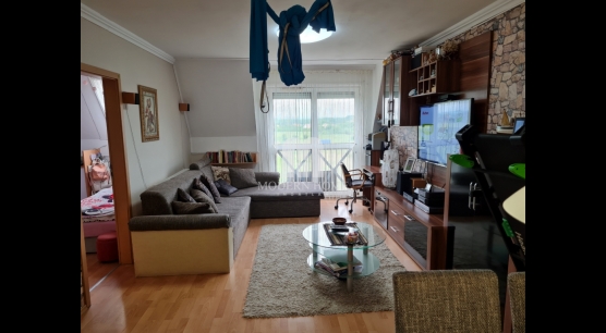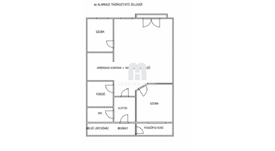Elosztása: amerikai konyha – nappali – étkező – előtér – 2 szoba – fürdő – wc – franciaerkély – és függőfolyosó.