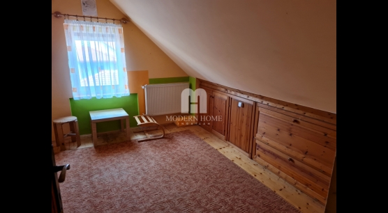 felső szint: konyha + 2 szoba + 2 félszoba + fürdő + wc.