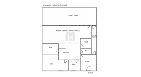 -elosztása: előtér + amerikai konyha – nappali – étkező – 1 félszoba + 2 szobás + fürdő + wc.