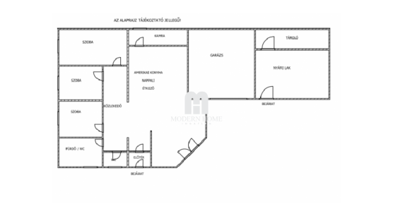Elosztása: előtér – közlekedő - amerikai konyha – nappali – étkező – kamra – 3 szoba.