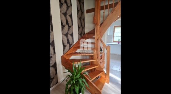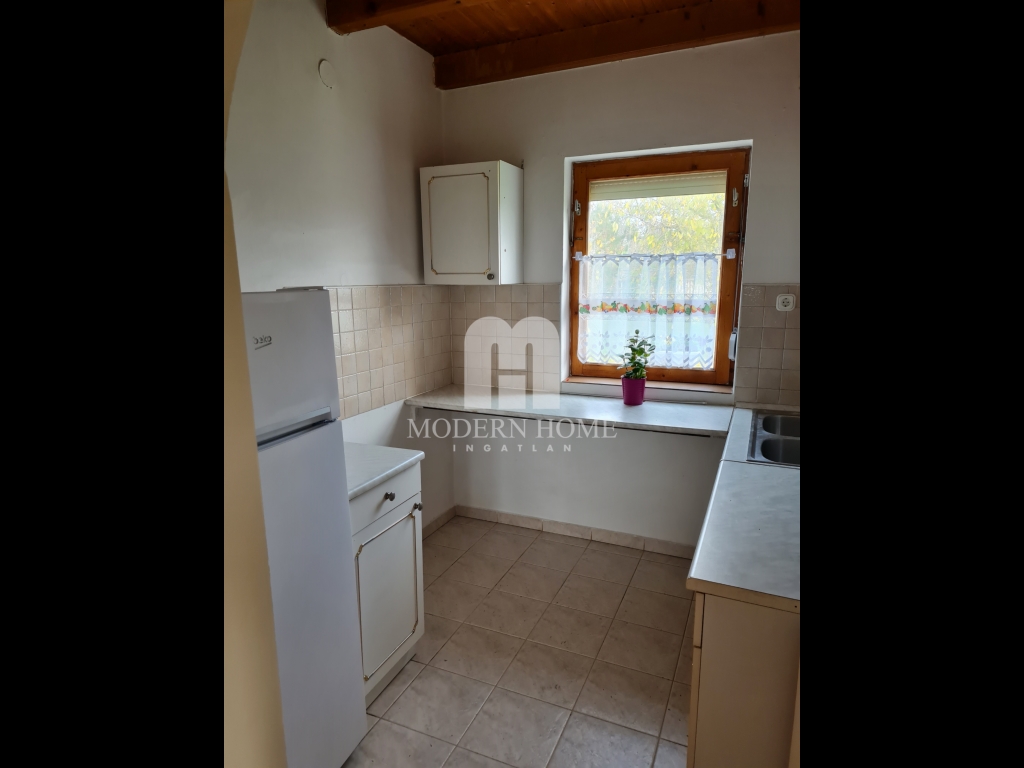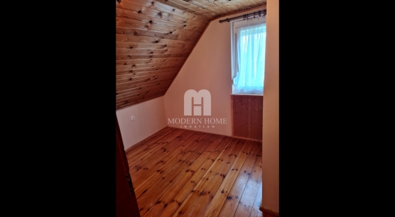 • elosztása: előtér + nappali + konyha + fürdő + wc, az emeleten 2 szoba.