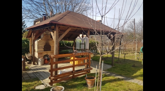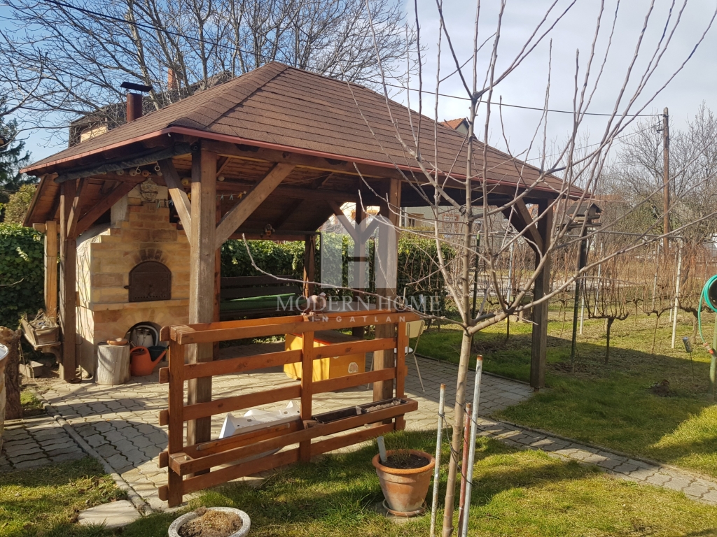 Zárt, körbekerített, parkosított – rengeteg gyümölcsfával ( füge, mandula, mogyoró, barack, körte, alma, kiwi, szőlő, szilva, cseresznye, tőzegáfonya ) ellátott udvarban, családi összejövetelek esetén grillezésre – bográcsozásra a hely már kialakított. Az udvar hangulatát fokozza a szanetli, mely – kemencével beépített, csak fokozza a kikapcsolódás / sütés / főzés örömeit. A kertben gyerekek részére medence – játszóház elhelyezhető. Öntözéshez kiválóan biztosított a kerti csap, és a fúrt kút.