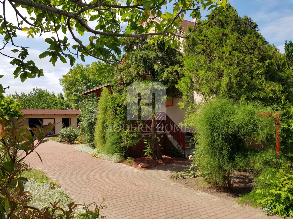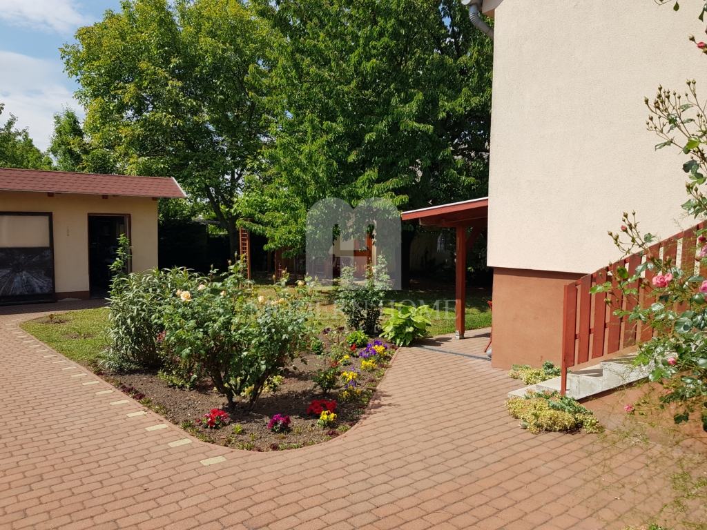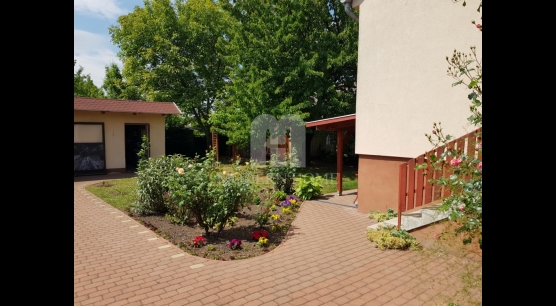 Az udvarban egy hatalmas (40nm) szerelőaknás garázs kapott helyet, amely jelenleg 1 állásosként funkciónál, de könnyedén 2 állásosra alakítható át. A garázshoz térkövezett udvaron keresztül juthatunk el. Zárt – meseszép dísznövényekkel és gyümölcsfákkal parkosított és körbekerített kertben családi összejövetelek esetén, grillezésre – bográcsozásra a hely kialakítható, gyerekek részére medence – játszóház elhelyezhető. Az ingatlan nagycsaládosok részére ( is ) ideális választás.