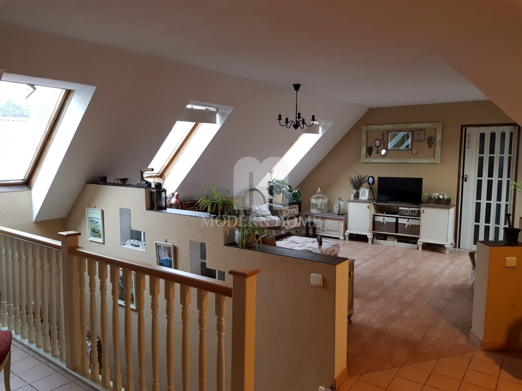Modern stílusú, kiváló paraméterekkel, elosztással és tájolással igazán letisztult szín és ízlésvilággal, forgalom zajától távol, családbarát környezetű hangulatos ház keresi új gazdáját. A ház aurájához nagymértékben hozzátartozik a hangulatos terasz.