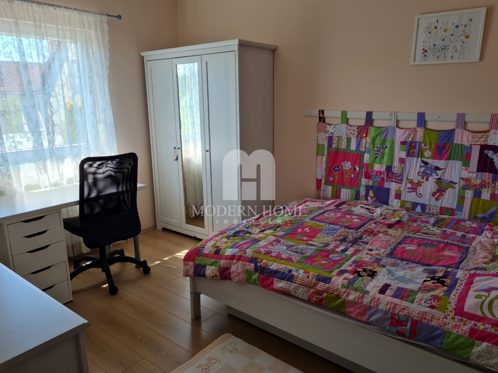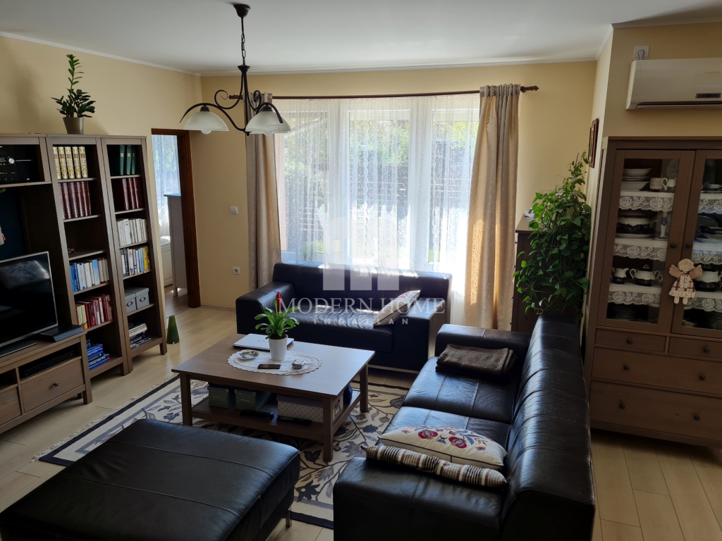 Modern stílusú, kiváló paraméterekkel, elosztással és tájolással, igazán letisztult szín és ízlésvilággal, forgalom zajától távol, családbarát környezetű hangulatos ház keresi új gazdáját. A ház aurájához nagymértékben hozzátartozik az idilli terasz ( 25 nm) kert ( 60 nm ) a kényelmes hintaágy, amely kikapcsolódás / meditálás során erdőre tekint. Családi összejövetelek esetén grillezésre / bográcsozásra hely kialakítható, gyerekek részére medence / játszóház elhelyezhető.
