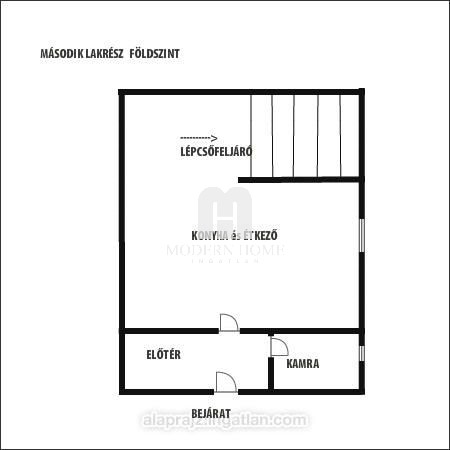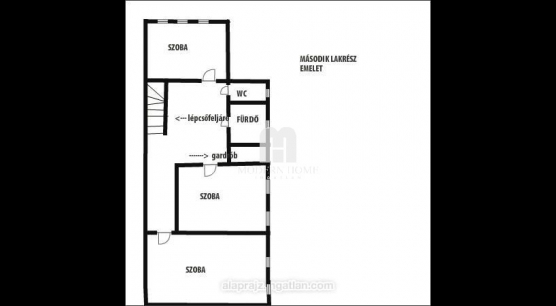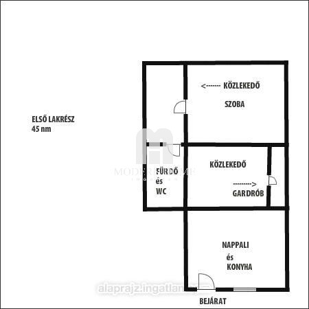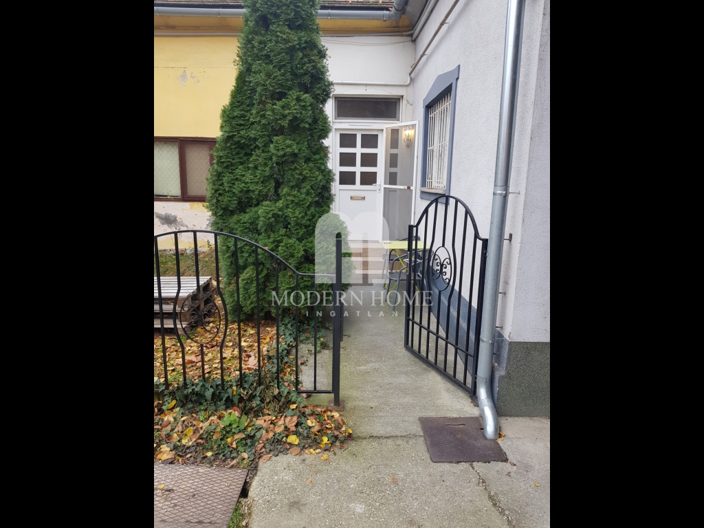 Az egyik rész utcafronti, ( külön bejáratú ) amely 45 nm, nappali + konyha + gardrób + fürdő + wc. ( igény esetén vállalkozásnak is kialakítható )