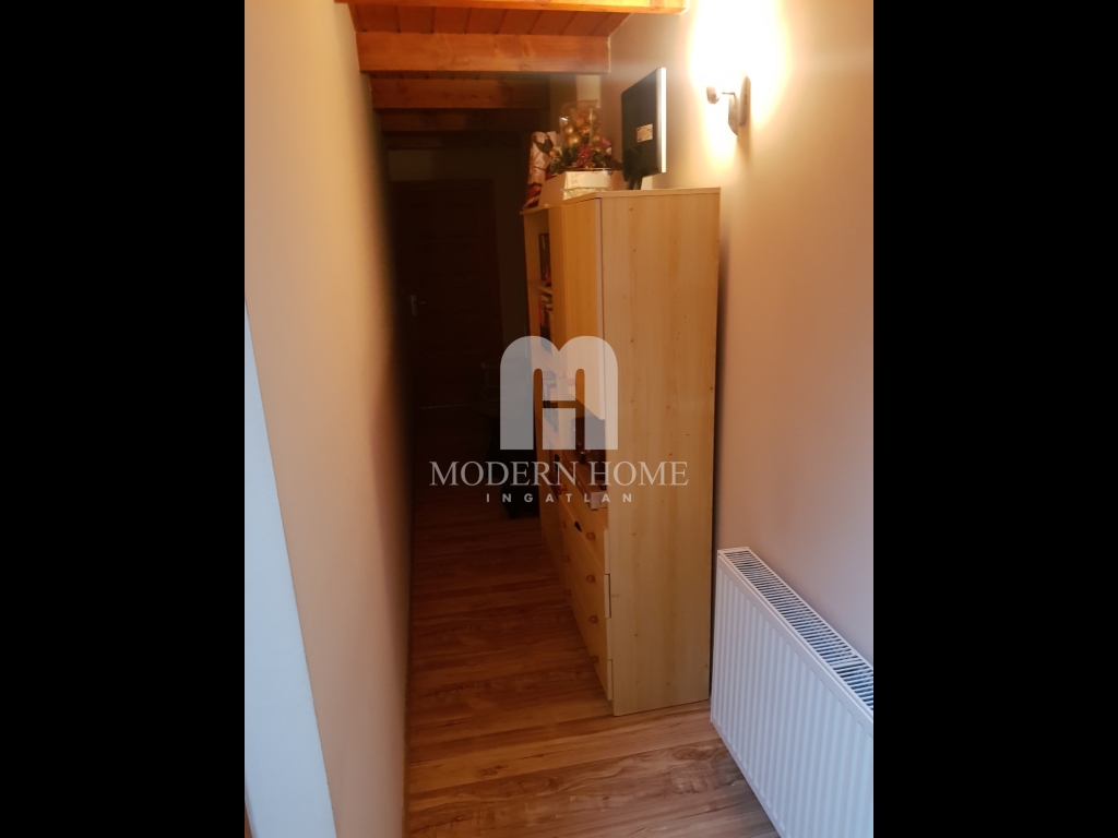 A másik rész egy zárt kapualjon keresztül, kertkapcsolattal egybekötve közelíthető meg. Az igényesen felújított 95 nm lakrészben 3 szoba + konyha + étkező + gardrób + fürdő + wc + konyha + kamra kapott helyett. Burkolatok tekintetében, a szobák laminált parketta, míg a többi helyiség járólap burkolatot kapott.