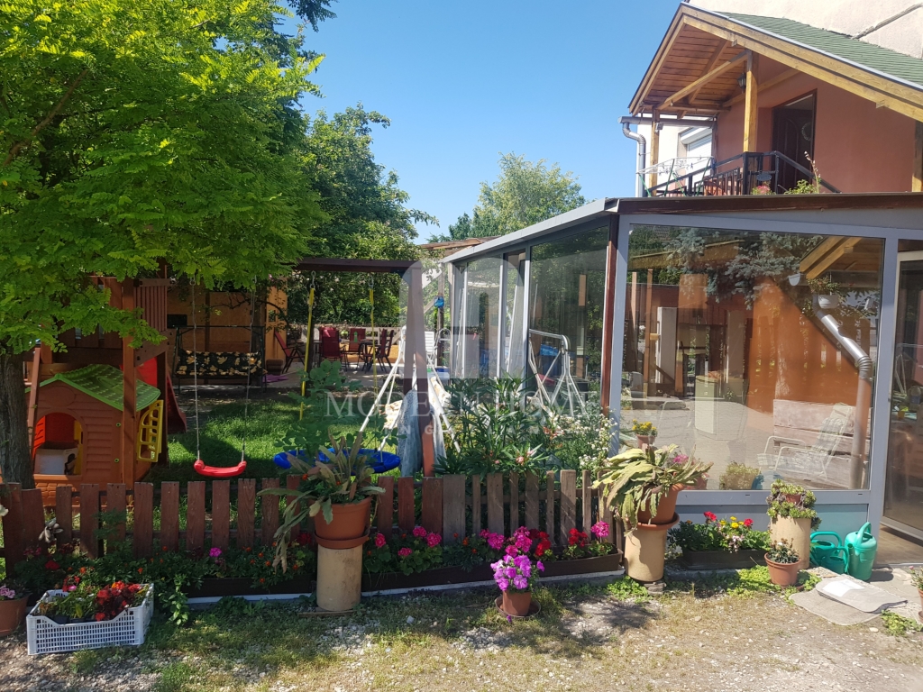 Zárt – meseszép dísznövényekkel és gyümölcsfákkal parkosított és körbekerített kertben családi összejövetelek esetén, grillezésre – bográcsozásra a hely kialakítható, gyerekek részére medence – játszóház elhelyezhető. Az ingatlan nagycsaládosok részére tökéletes választás.
