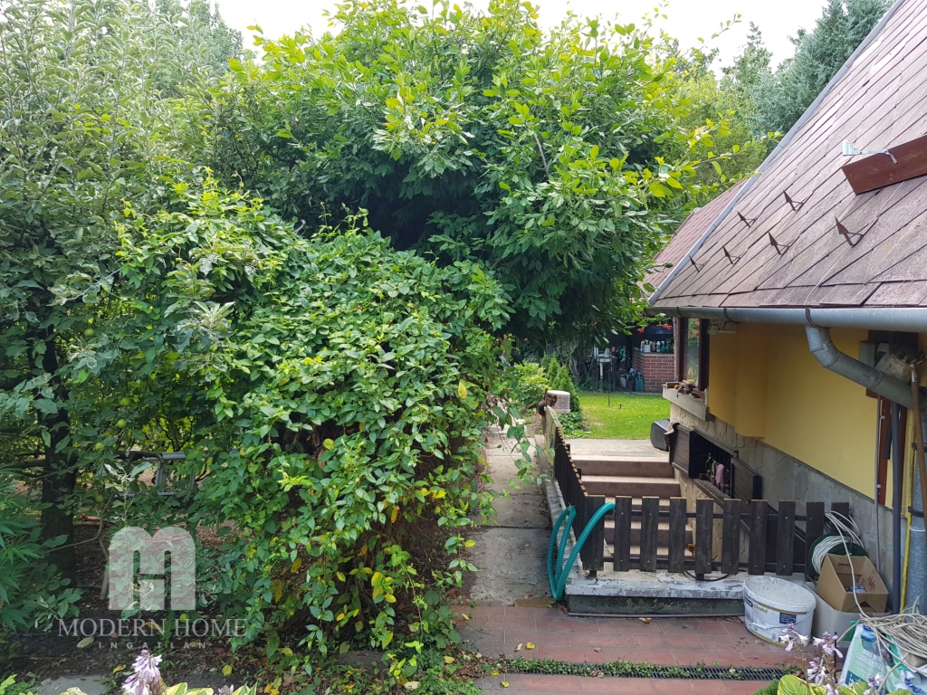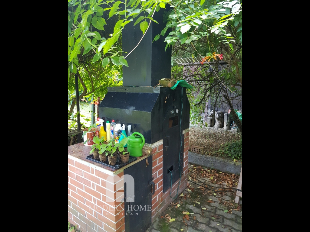 Udvarban gépkocsibeálló, szerszámtároló, több funkciós kemence, szanetli + fatároló, automatikus - programozható öntözőrendszer esőérzékelővel.