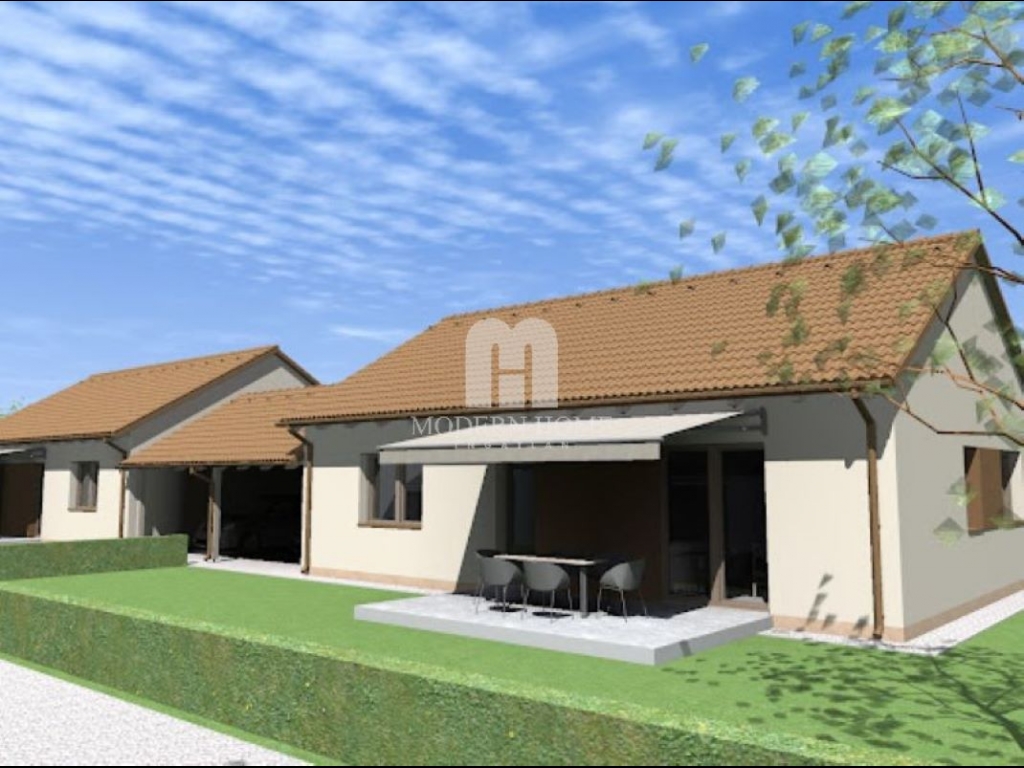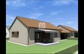 elosztása: előtér + amerikai konyha nappali – étkező + 3 szoba + duplakomfort ( 2 fürdő ), + kamra + terasz ( 16 nm ) + fedett kocsibálló. ( 27 nm )