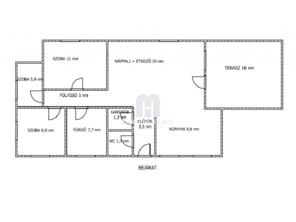 Elosztása: 72 nm, amerikai konyha + nappali + étkező + 2 + félszobás, ehhez tartozó 18 nm terasz.
